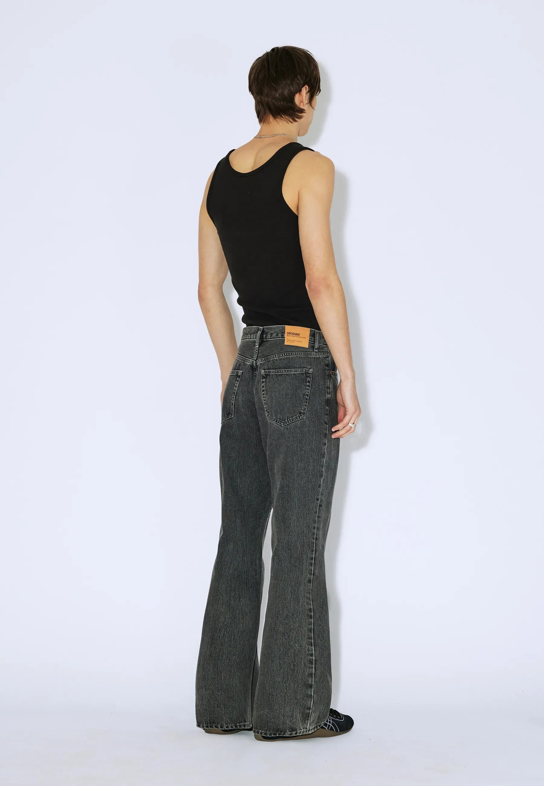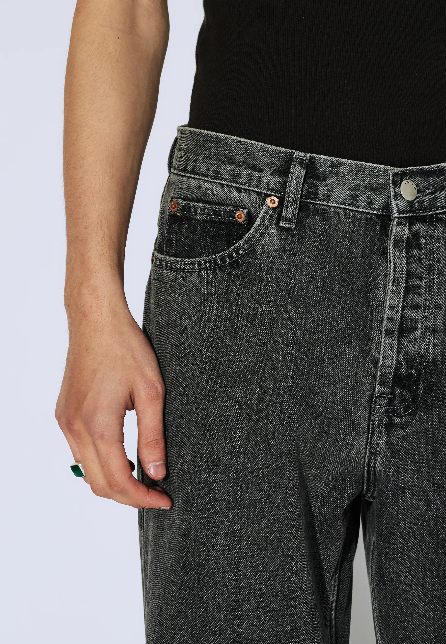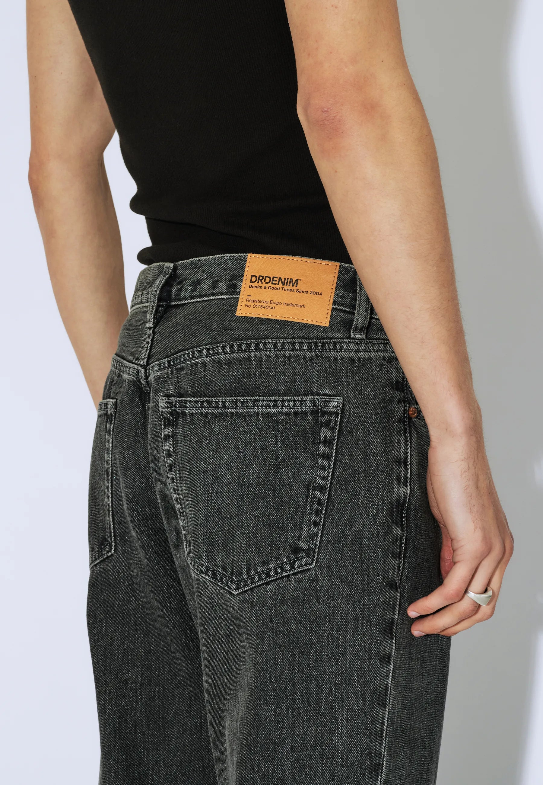 - Rigid (no stretch) denim fabric
